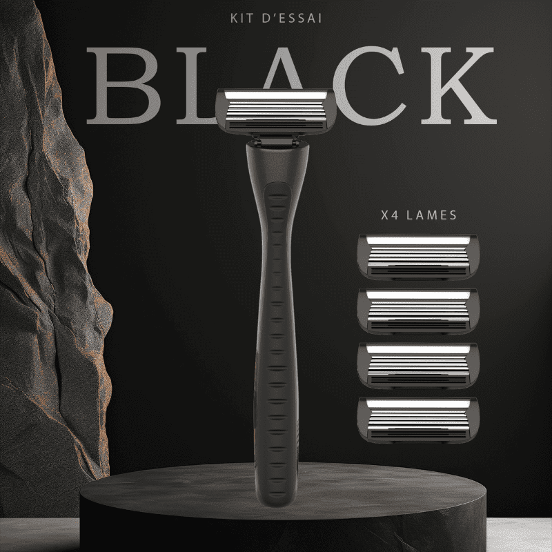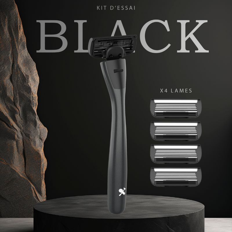 Le kit d'essai exclusif Black Edition est conçu pour offrir une expérience de rasage inégalée. Il comprend un rasoir au design élégant et moderne, fini en noir premium, accompagné de quatre lames de précision. Chaque élément a été soigneusement sélectionné pour garantir une qualité et une performance supérieures, vous assurant un rasage exceptionnel dès le premier passage.